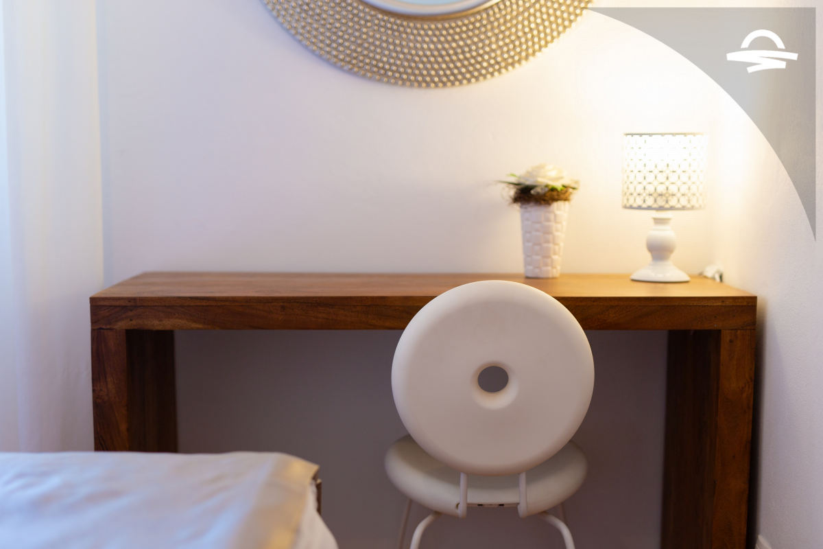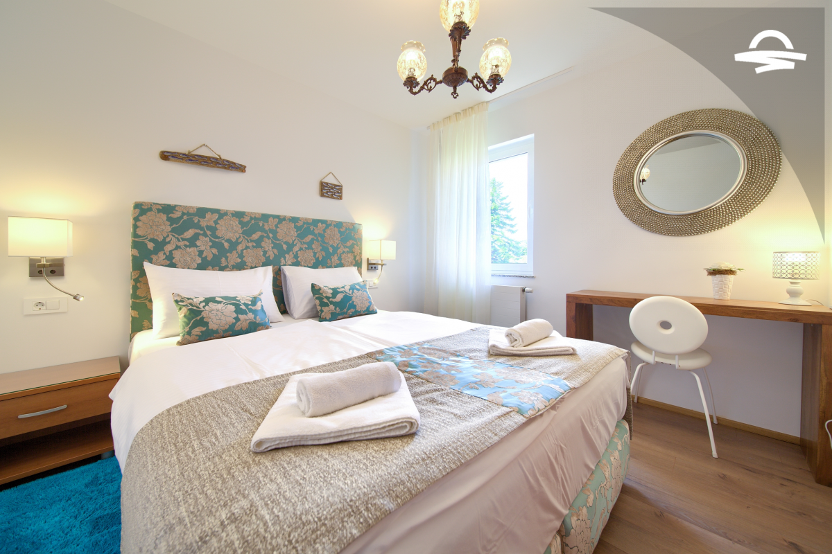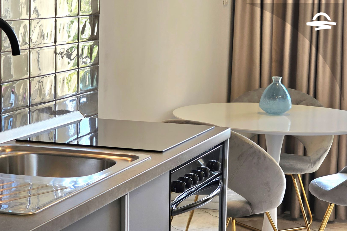 L'appartamento ha 45 m2 e può ospitare 2-4 persone. È composto di una cucina completamente attrezzata e soggiorno, una camera doppia, un bagno con doccia, e un balcone di 6 m2.