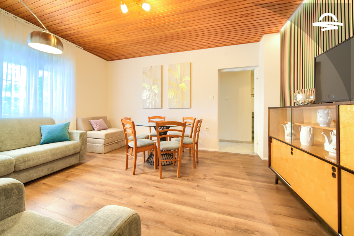 Sanja V18.08.2024.Optimal, auf dem neuesten Stand, sauberes und sehr schön eingerichtetes Apartment. Zentral, dennoch sehr ruhig gelegen. Parkplatz direkt vor dem Haus. Bis zum Hafen sind es ca. 2, bis zum Strand ca. 5 Minuten. Bäcker, Supermarkt, Restaurants usw. sind innerhalb 2 Minuten erreichbar. Die Gastgeberin ist sehr herzlich und zuvorkommend. Sie spricht Deutsch. Absolut empfehlenswerte Unterkunft. Wir kommen sehr gerne wieder.
