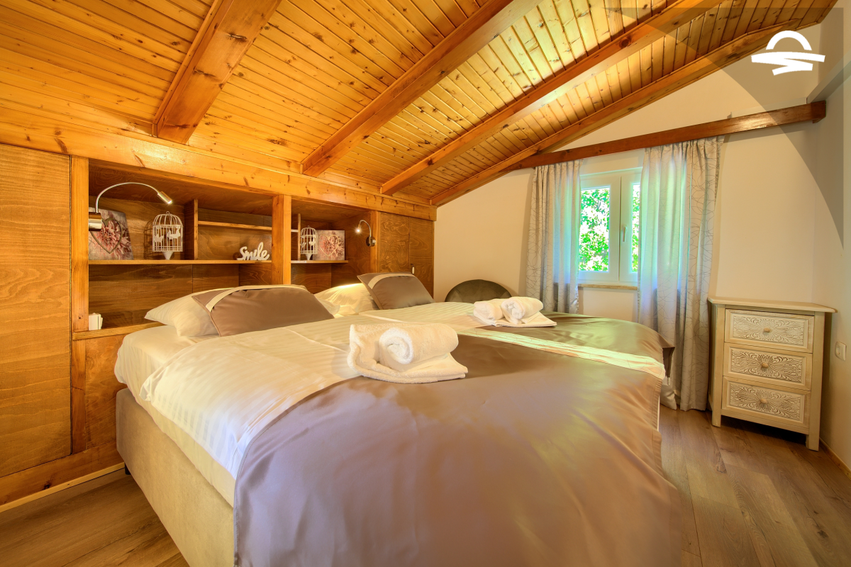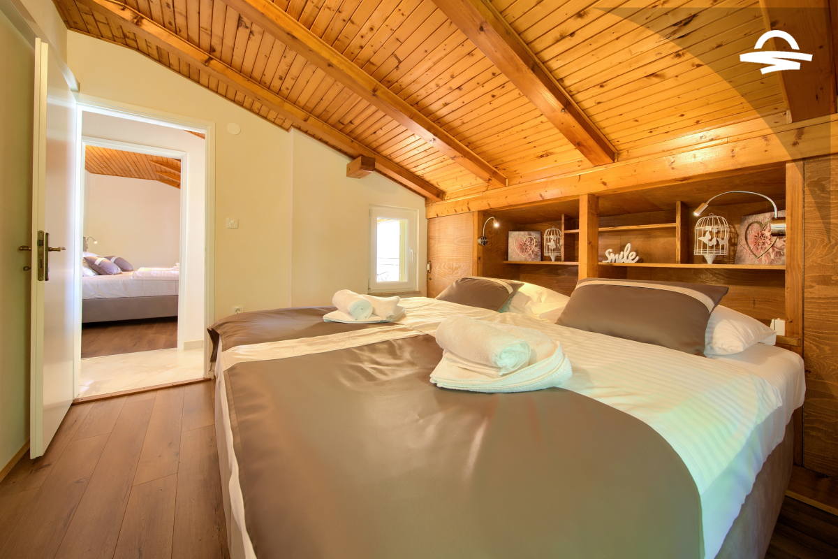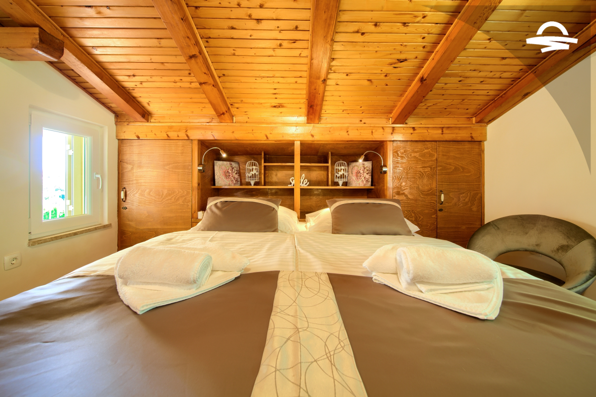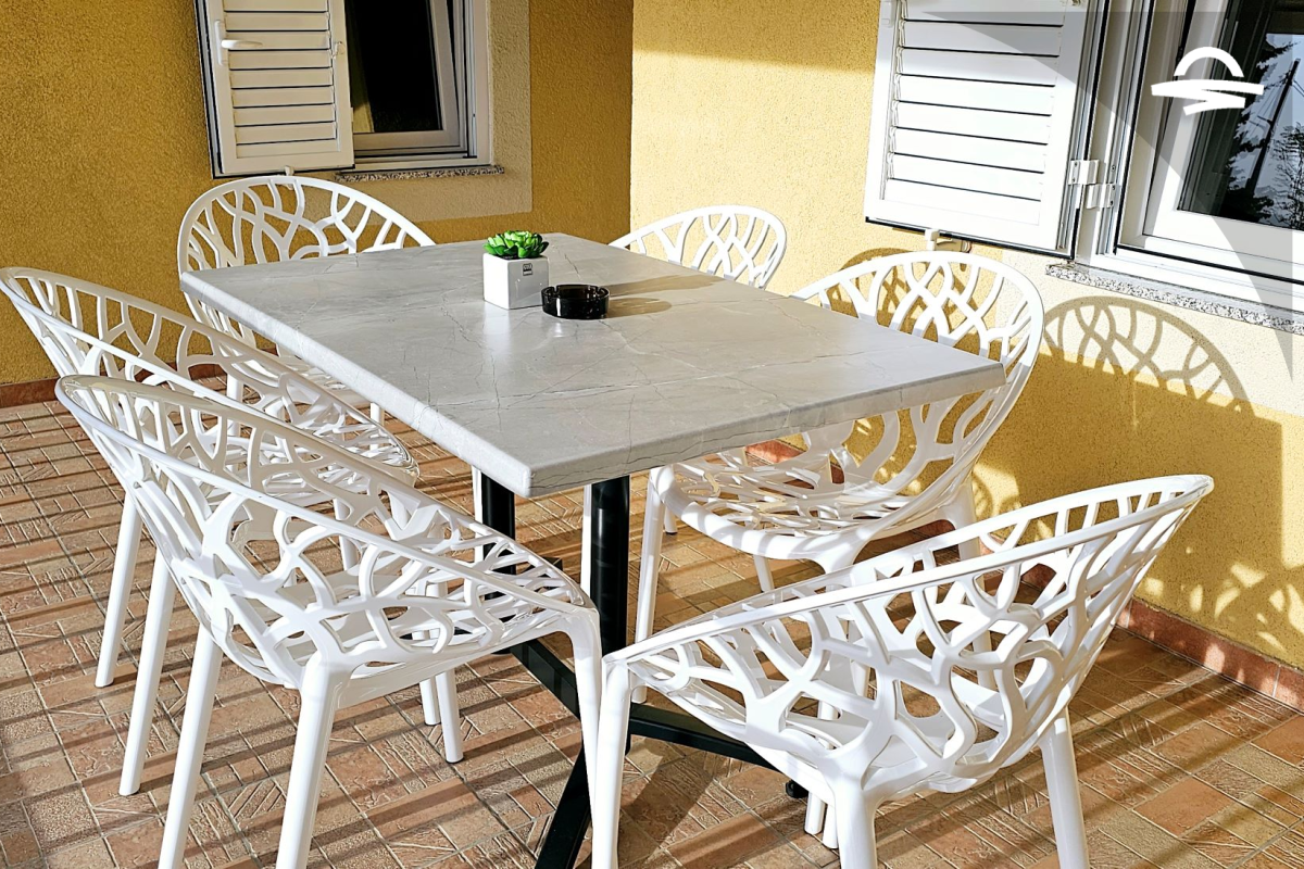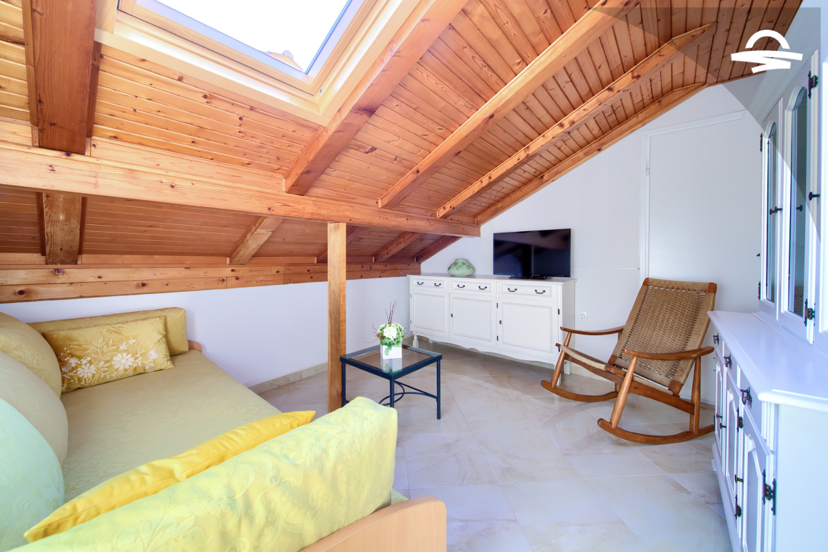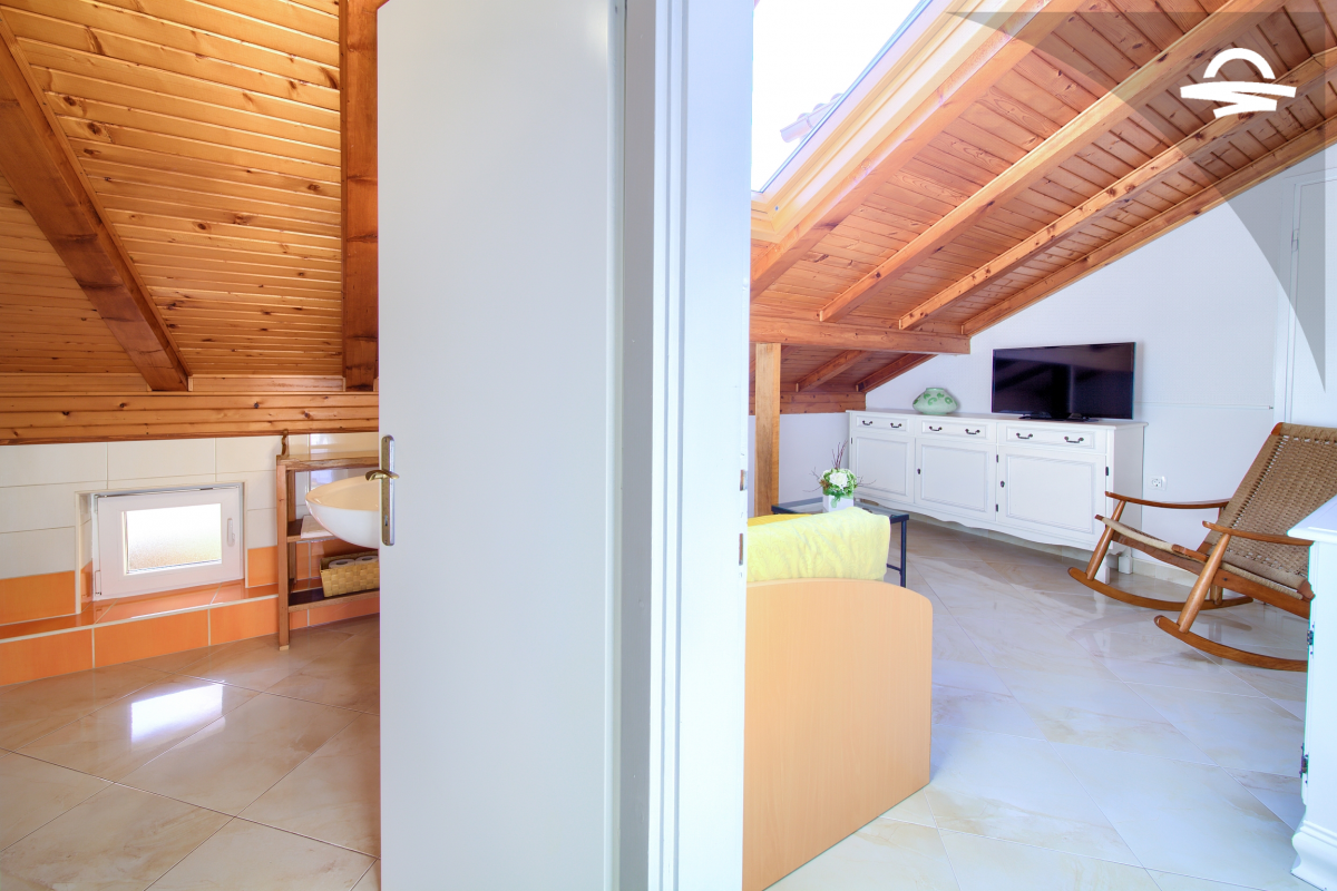 Questo bell'appartamento si trova al secondo piano di una casa privata, in mansarda. L'appartamento è situato nella città di Krk, solo 70 m dal centro e 150 m dalla spiaggia di ghiaia.