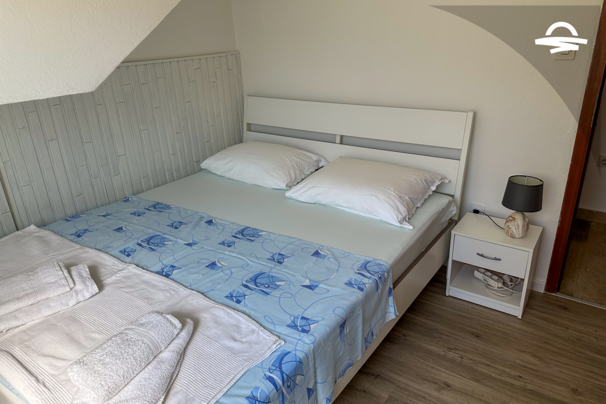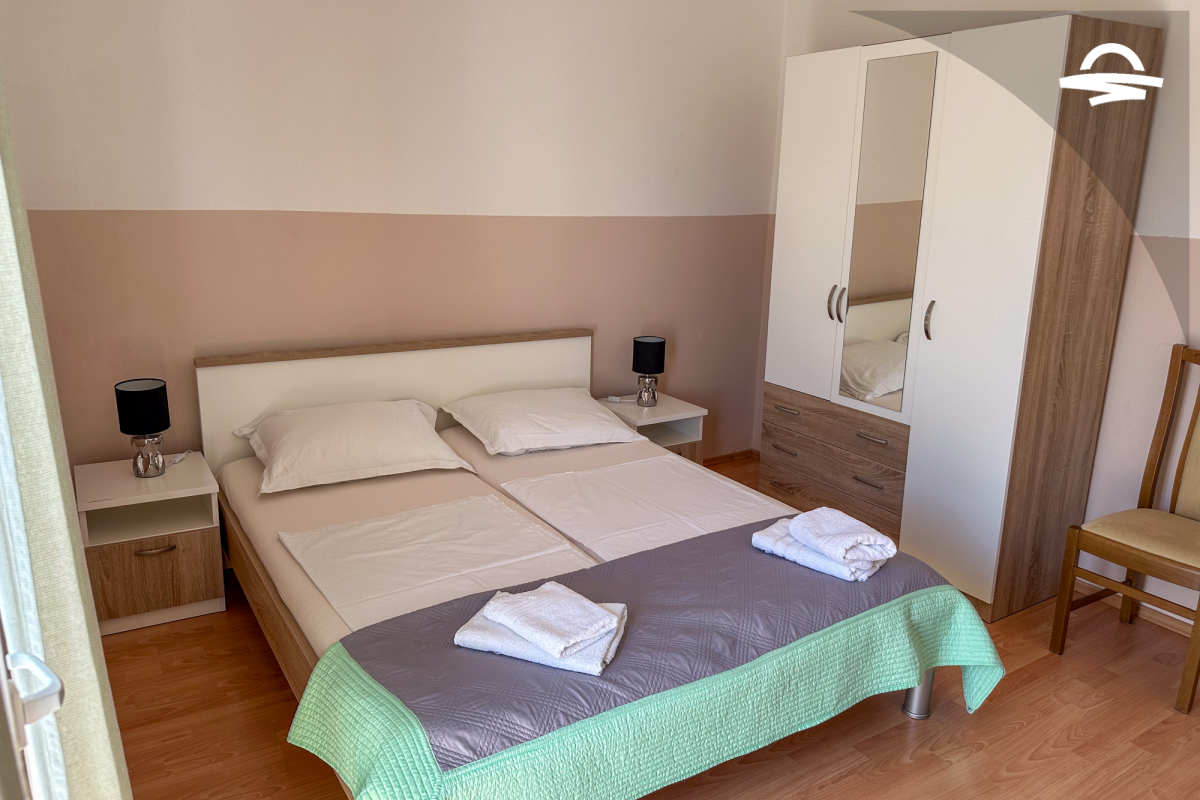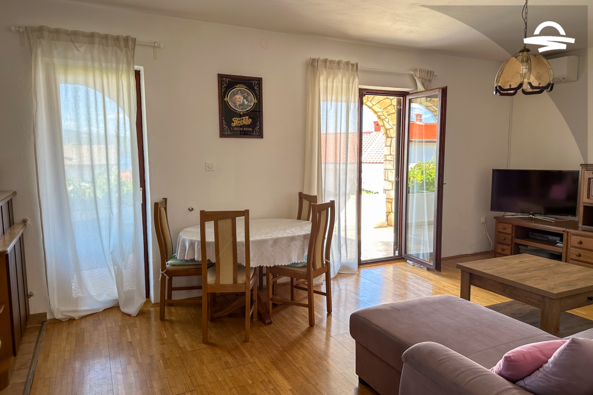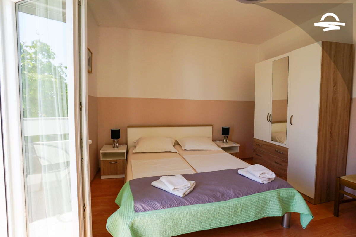Spazioso appartamento Barica 2 si trova al primo piano di una casa privata. Questo appartamento di 72 m2 può ospitare 4-5 persone. Si compone di una cucina e soggiorno, una camera tripla, una camera doppia, due bagni con doccia ed un balcone di 16 m2.