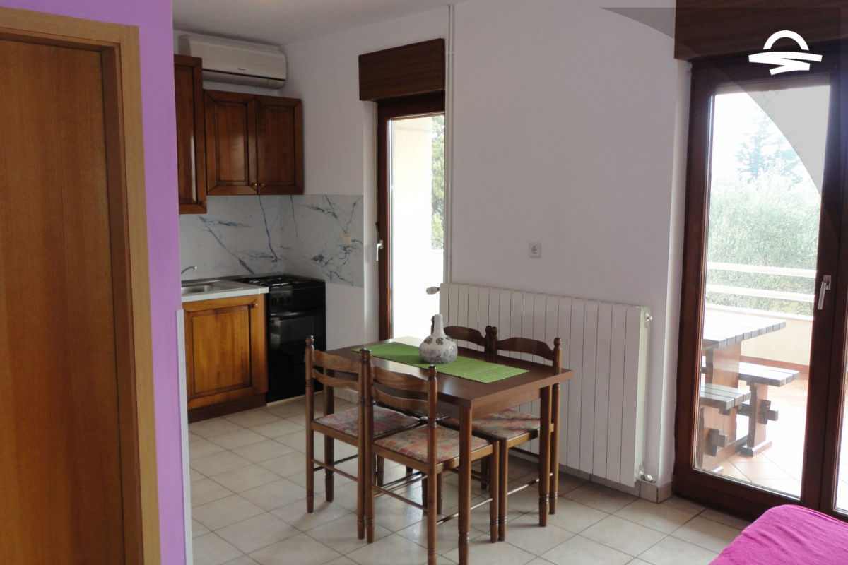 Arredato in modo semplice, però ben attrezzato appartamento Darko 4 si trova al primo piano di una casa privata. L'appartamento ha 50 m2 e può ospitare 4-5 persone. Si compone di una cucina e soggiorno, una camera doppia, una camera tripla, un bagno con doccia ed un balcone spazioso di 22 m2.