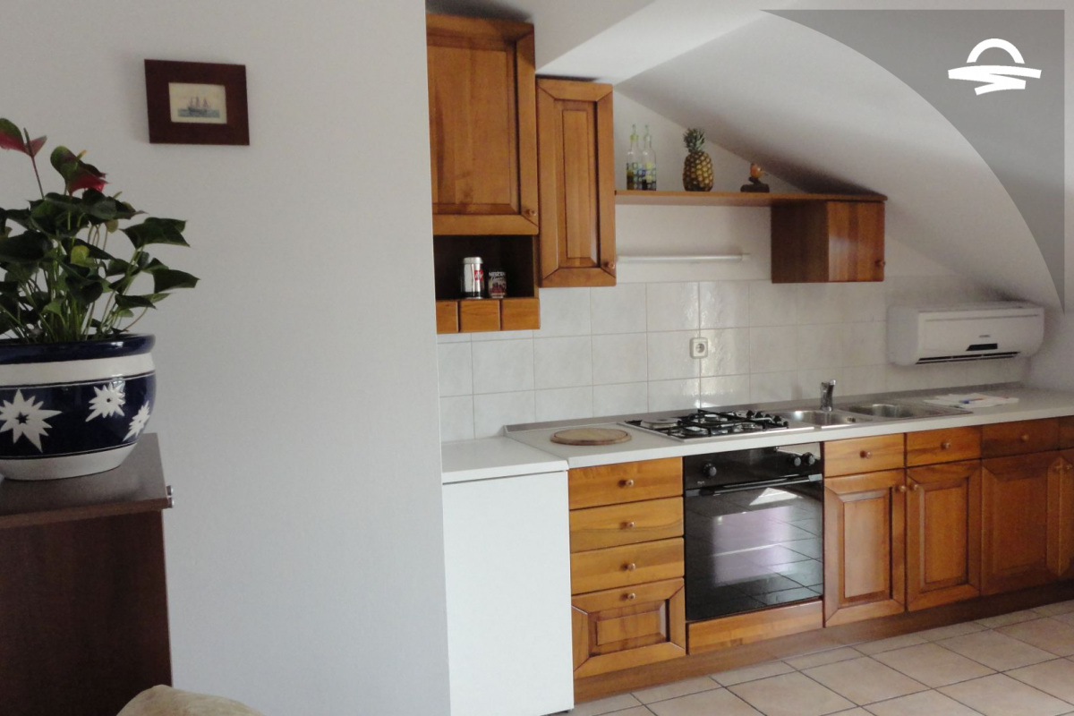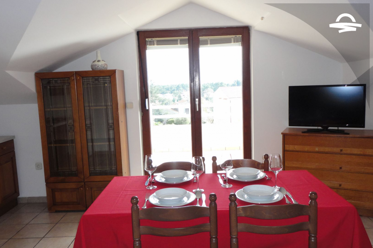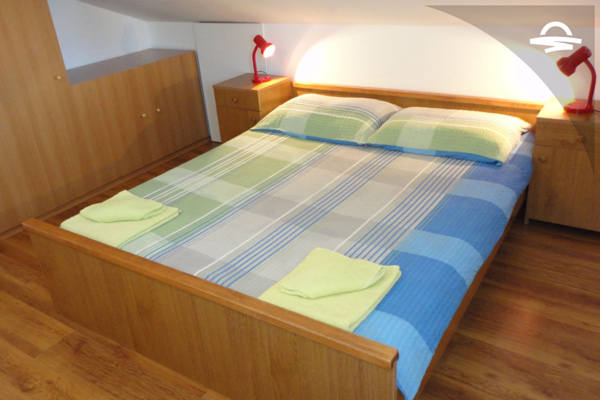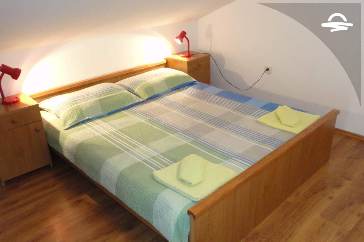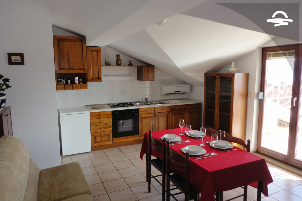 Confortevole e bel' appartamento Darko 5 si trova al terzo piano di una casa privata, in mansarda. L'appartamento ha 45 m2 e può ospitare 2-4 persone. Si compone di una cucina e soggiorno, una camera doppia, un bagno con doccia ed un balcone con vista panoramica sul mare.