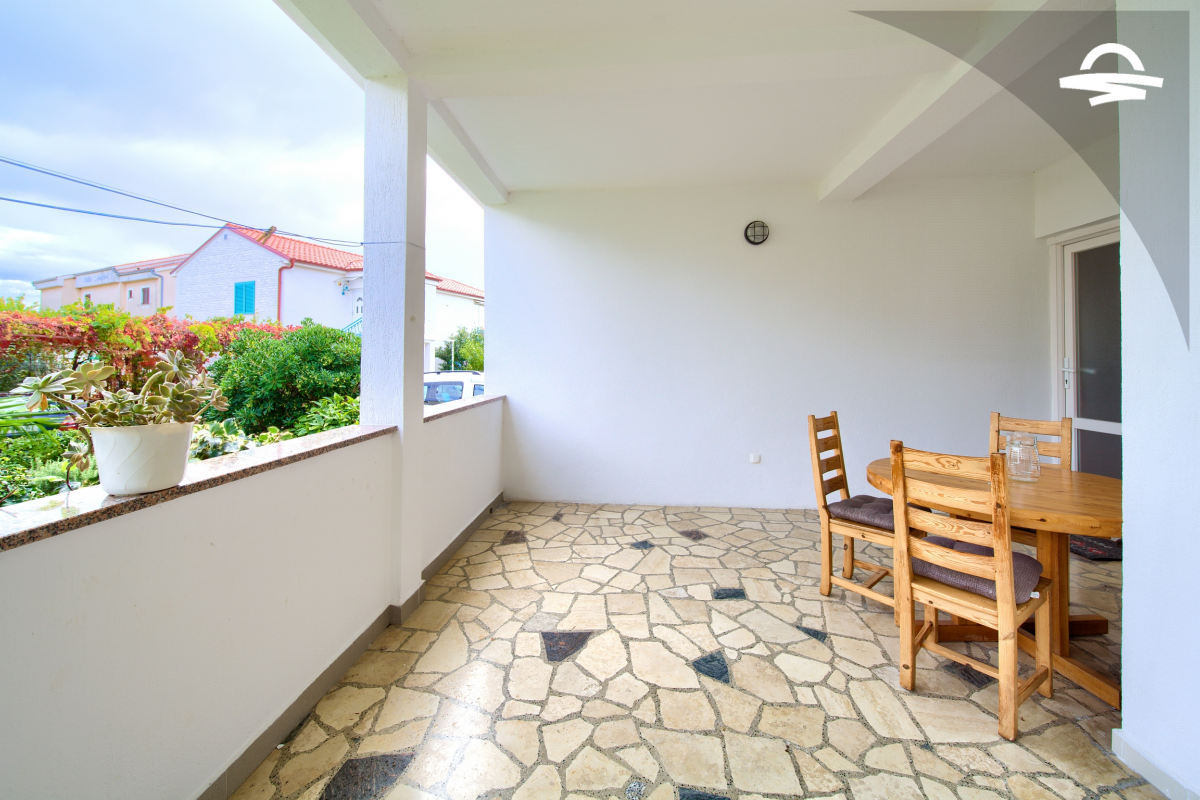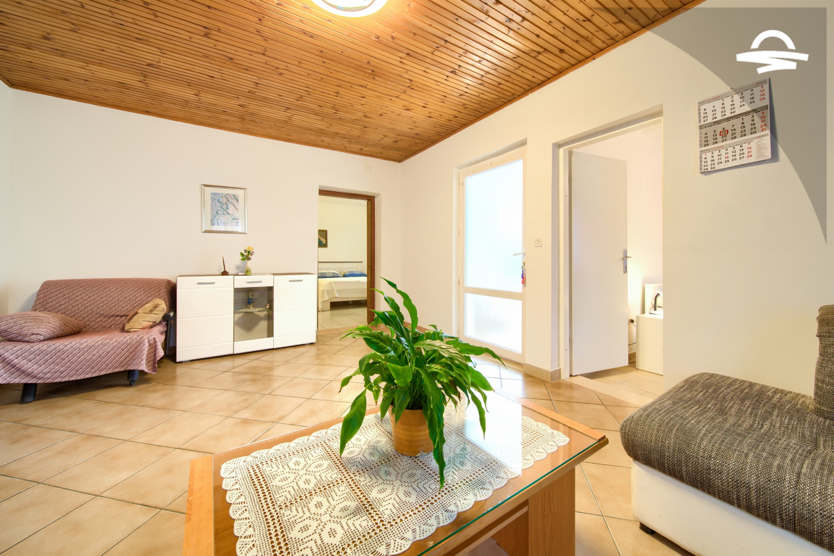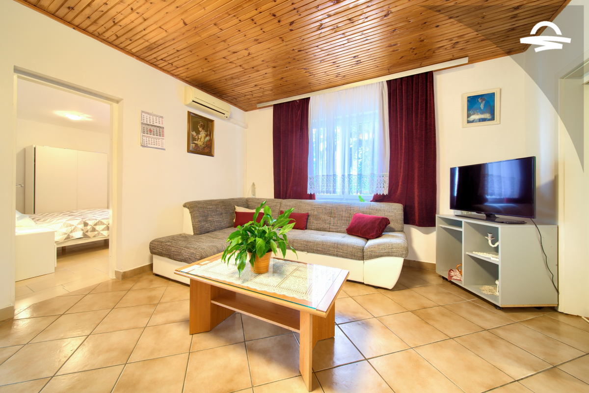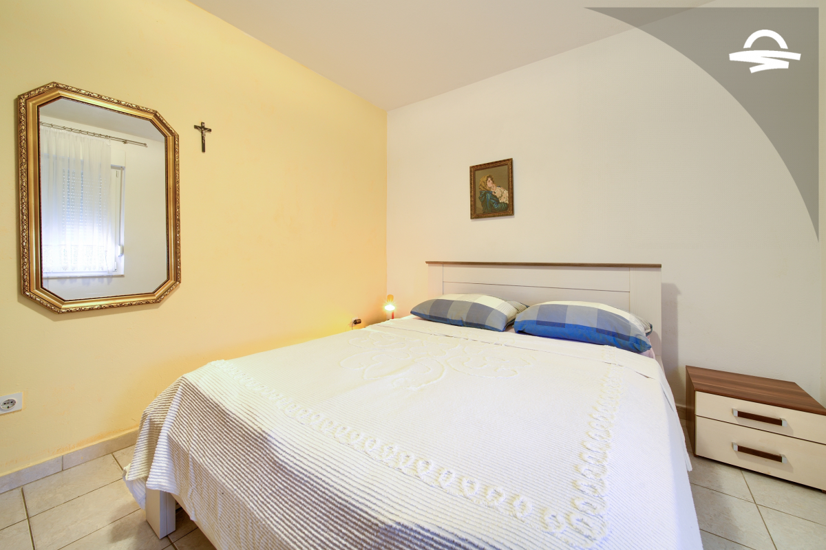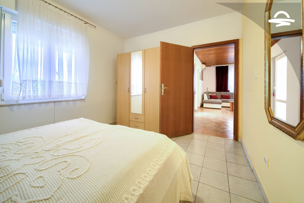Appartamento spazioso e ben attrezzato Marica C è situato al piano terra di una casa di famiglia. Questo appartamento di 67 m2 può ospitare comodamente 4-6 persone. Si compone di cucina e soggiorno, due camere doppie, un bagno con vasca e una terrazza di 15 m2.