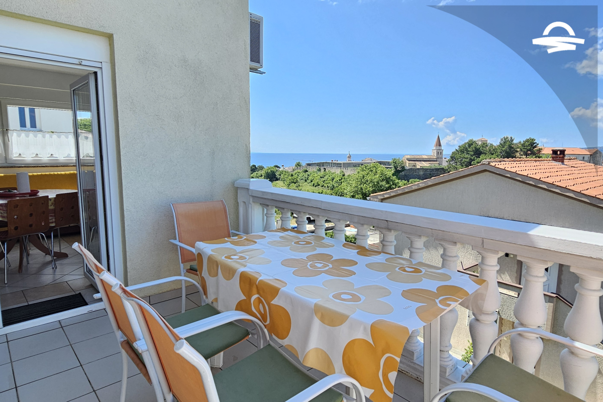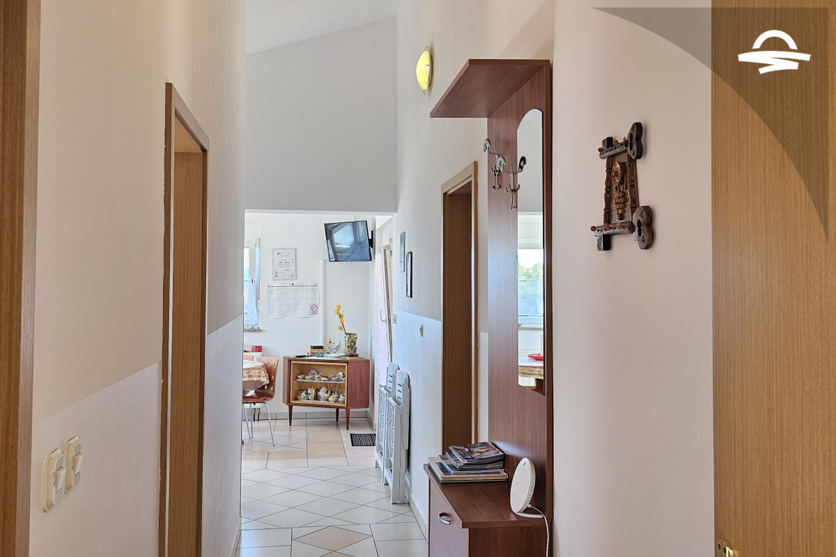 Nuovo arredato l'appartamento Marino 3 si trova al primo piano di una casa privata. L'appartamento ha 50 m2 e si compone di una cucina ben attrezzata e soggiorno, due camere doppie, un bagno con doccia, e un balcone con meravigliosa vista sulle mura cittàdine e sul mare.