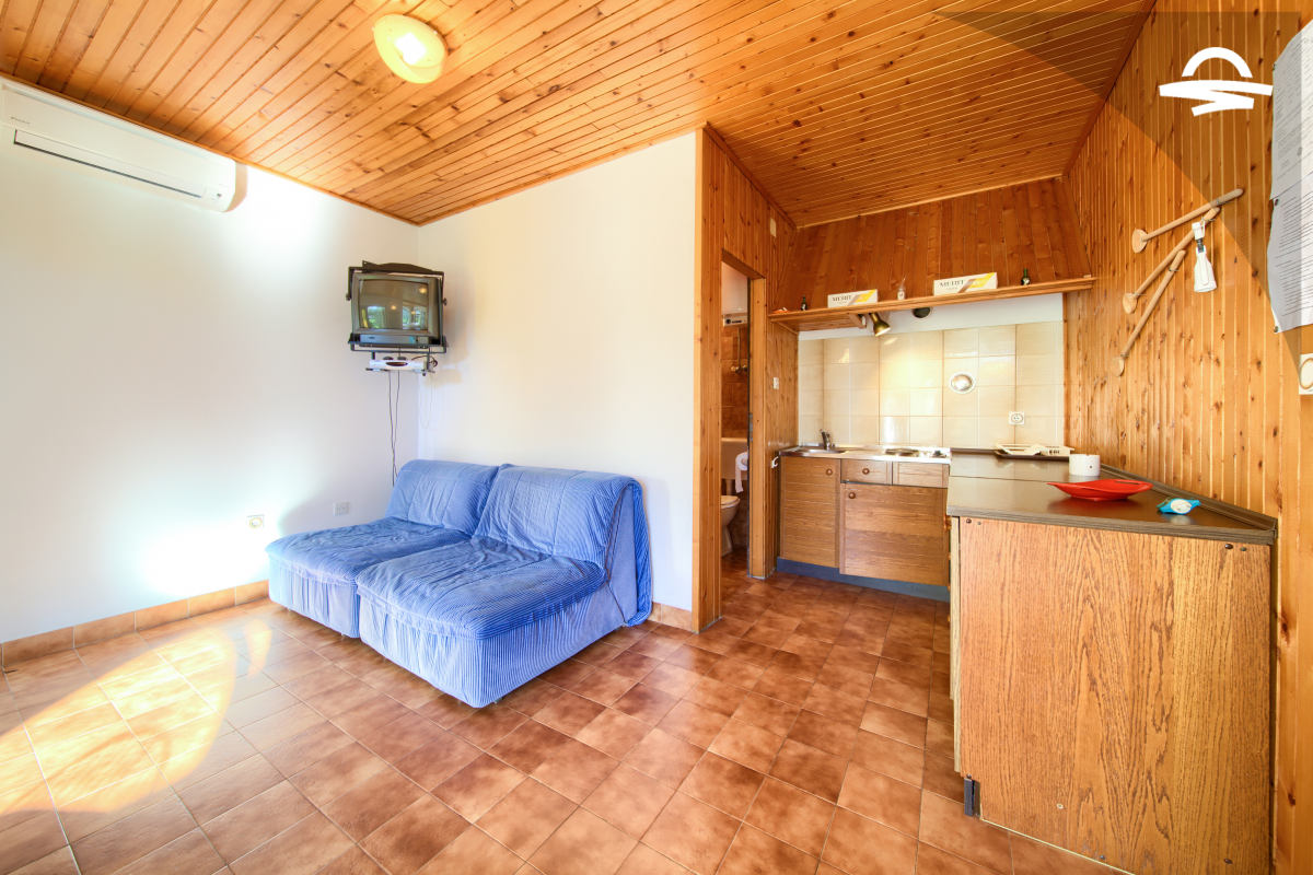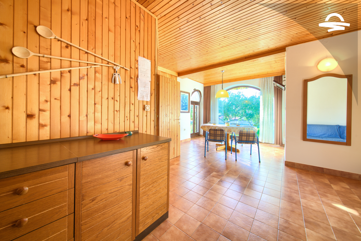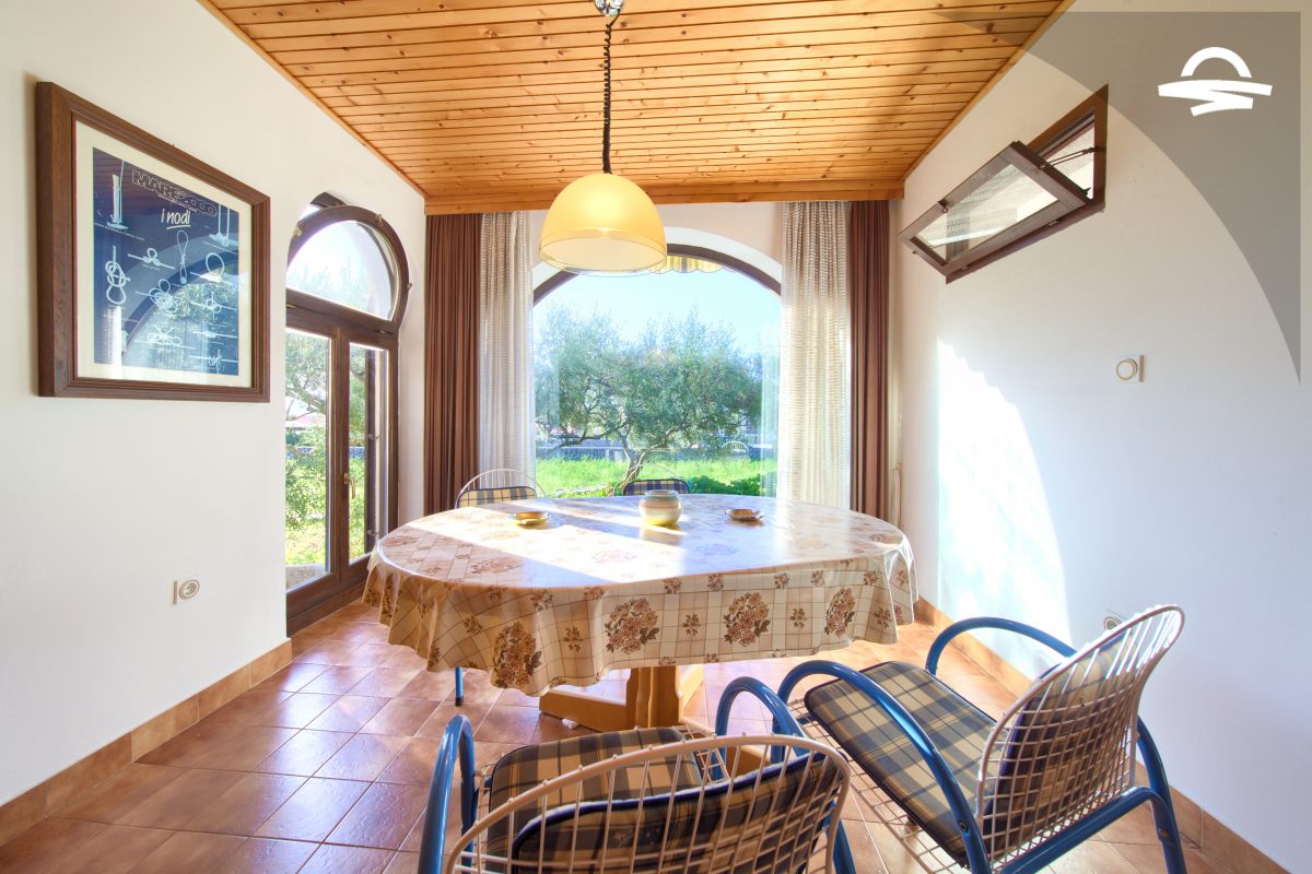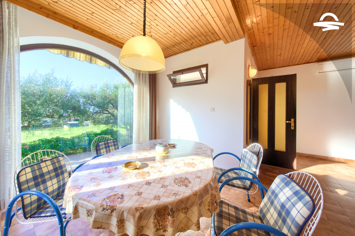 Appartamento Rita 1 per 2 persone, si trova al piano terra di una casa privata su una superficie di 40 m2. Si compone di una cucina e soggiorno, una camera doppia ed un bagno con doccia. Terrazza circondata con le olive è situata vicino all'ingresso dell'appartamento.