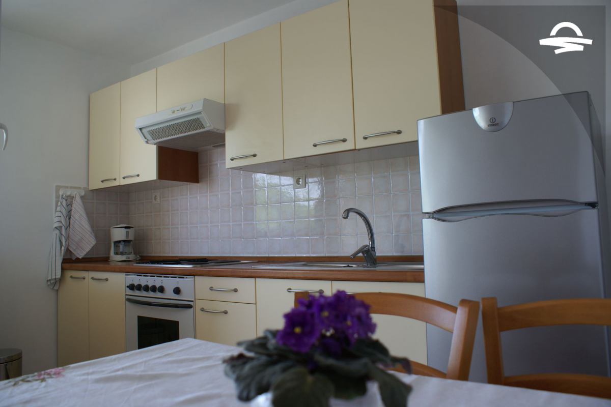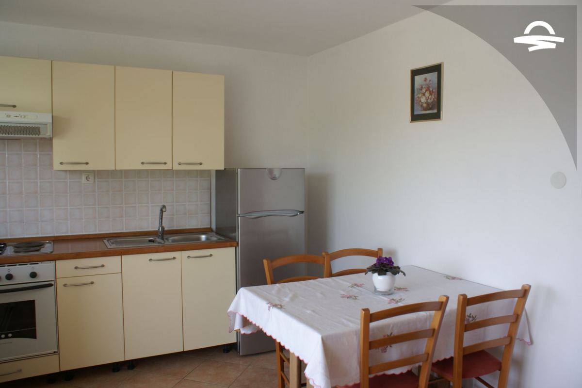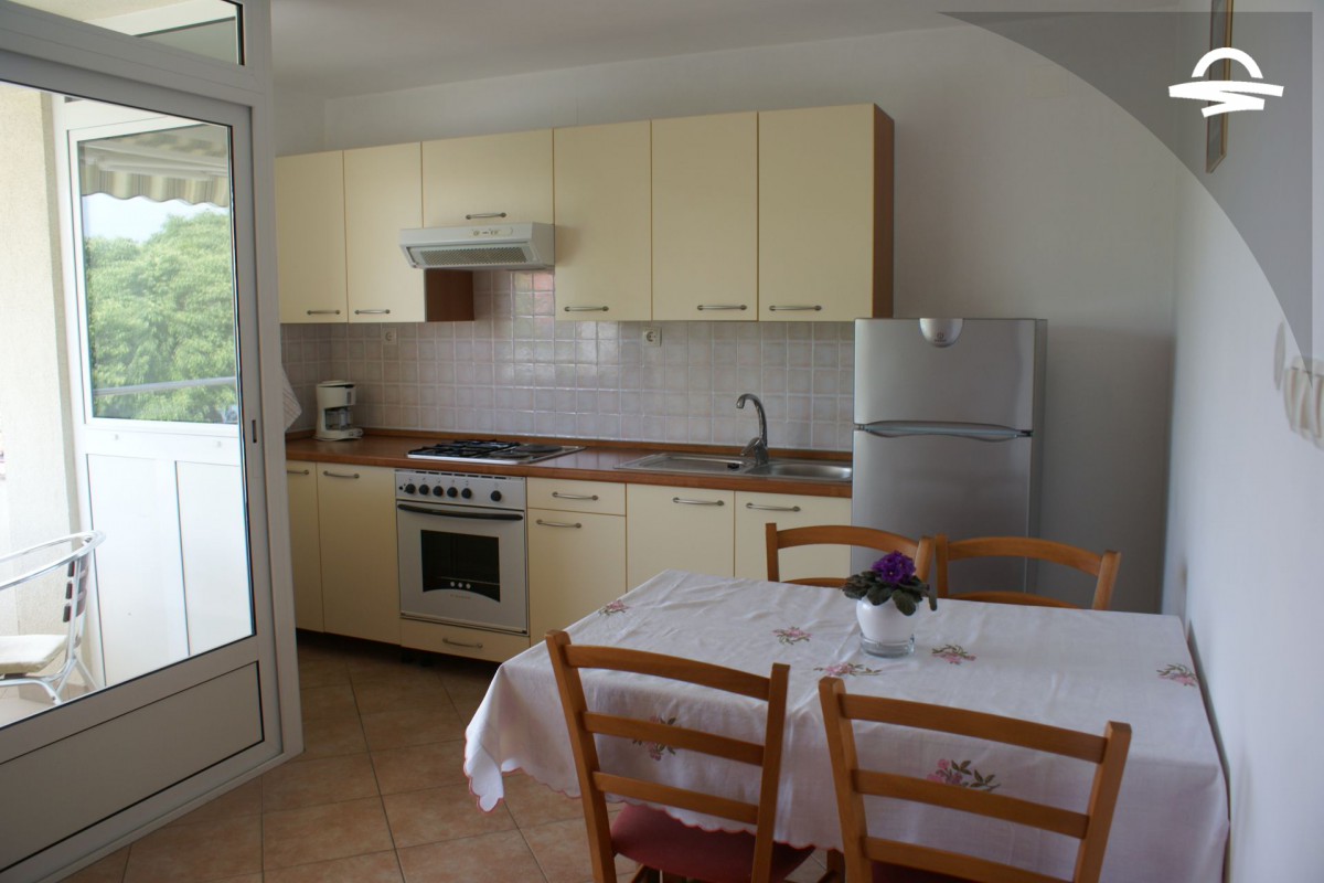 Moderno e attrezzato in modo confortevole appartamento Robert 3 si trova al primo piano di una casa privata. L'appartamento ha 53 m2 ed è composto di una cucina e soggiorno, due camere doppie, un bagno con doccia, e un balcone con vista mare. È ideale per 4 persone.