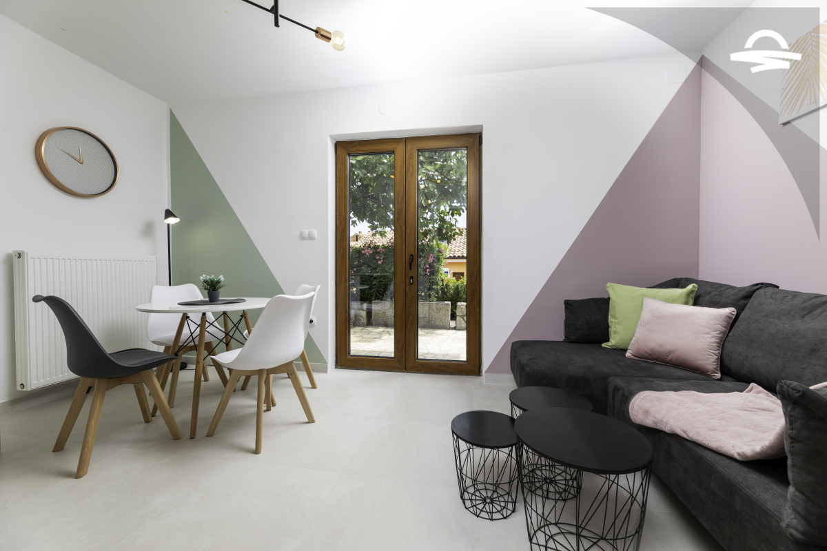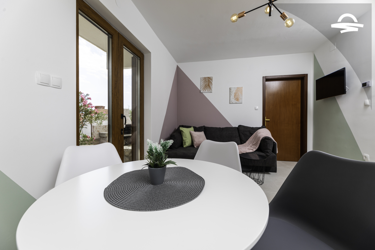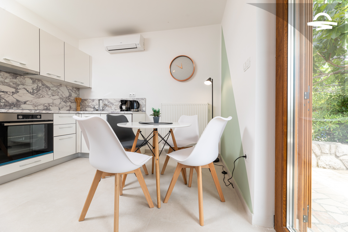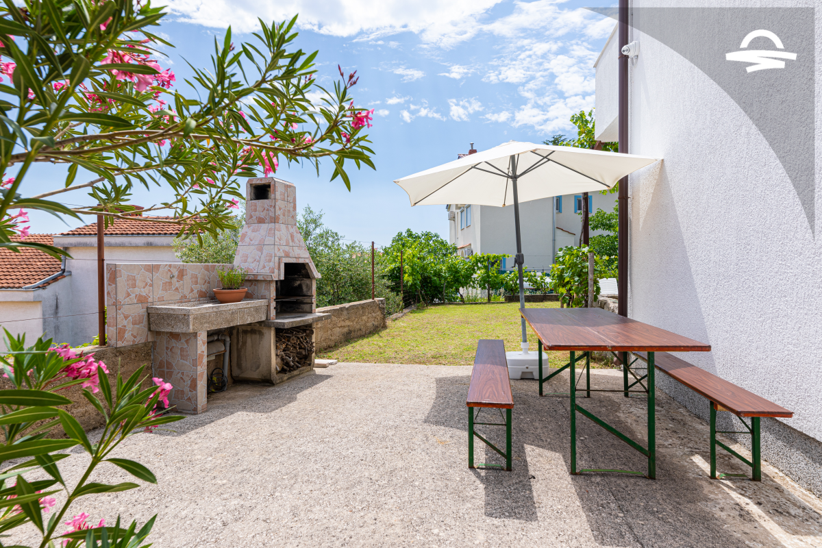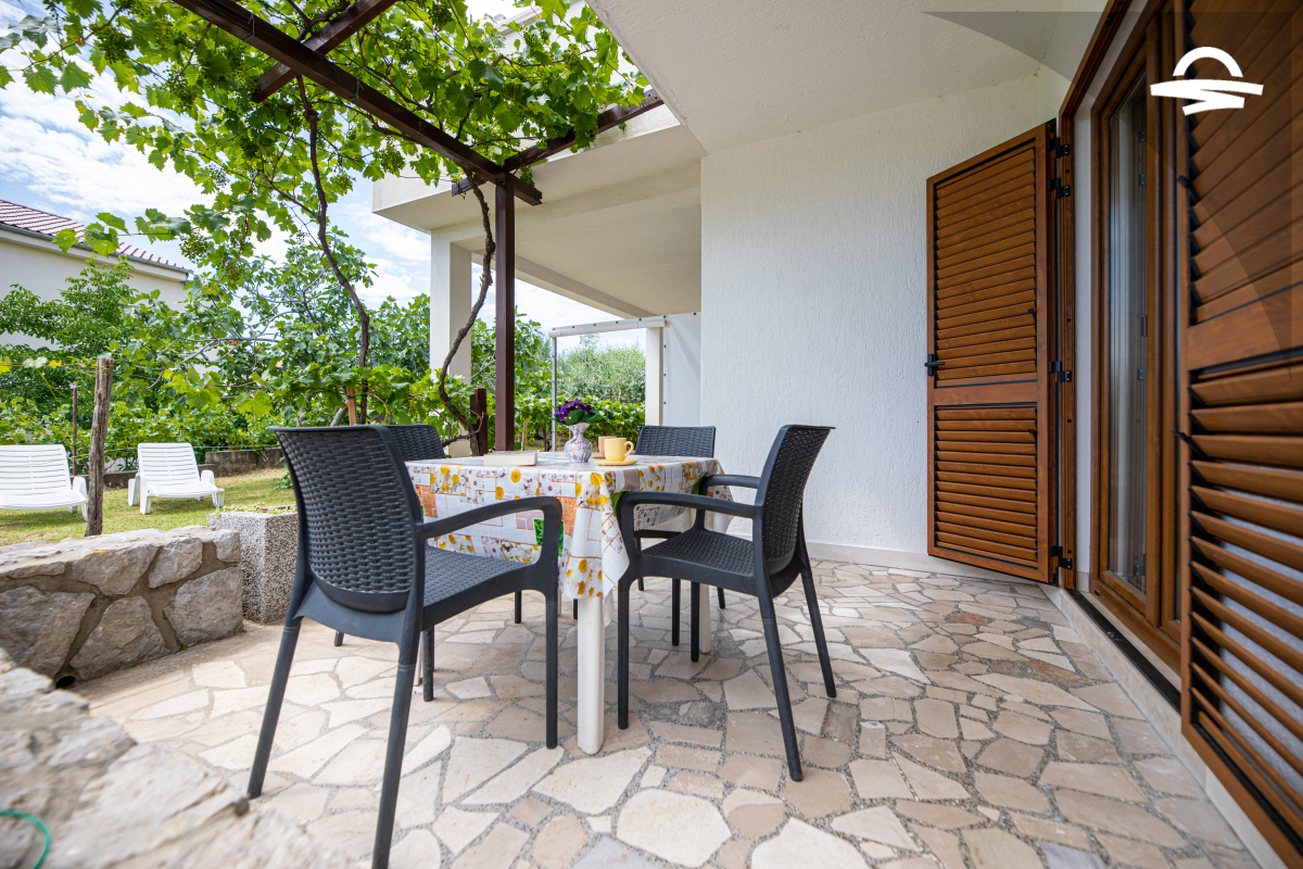 Semplice arredato però confortevole appartamento Vjeko 1 si trova al piano terra di una casa privata. L'appartamento ha 50 m2 dove può ospitare 4-5 persone. Si compone di una cucina e soggiorno, una camera doppia, una camera con letti separati, un bagno con doccia ed un terrazzo.