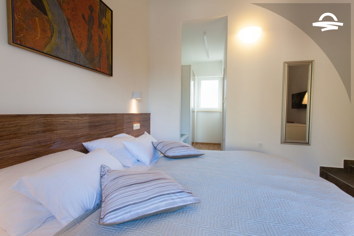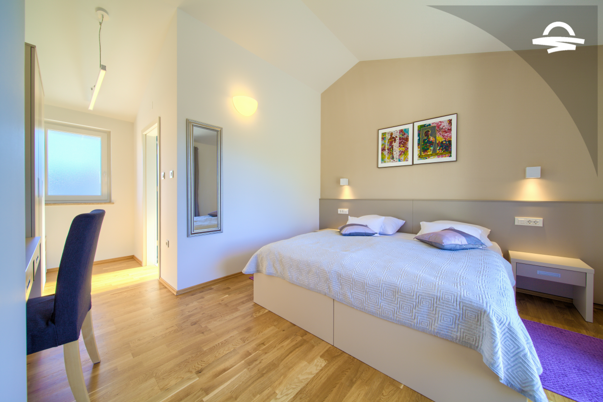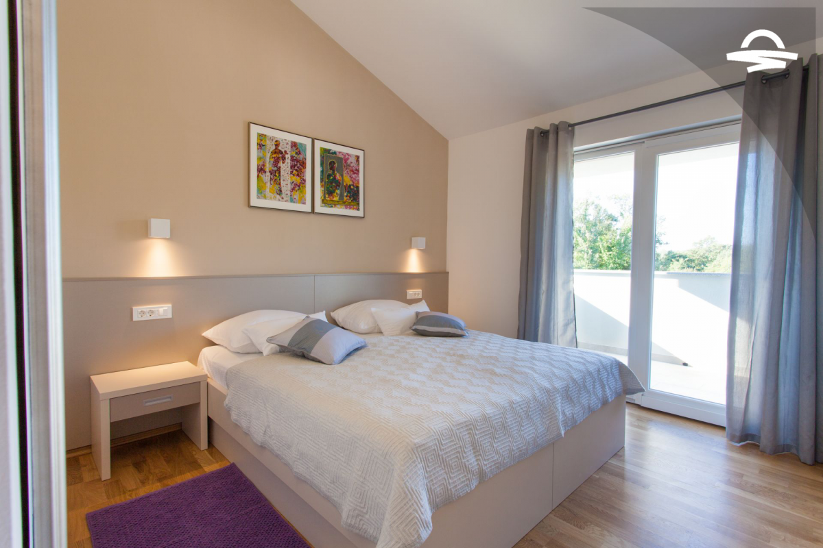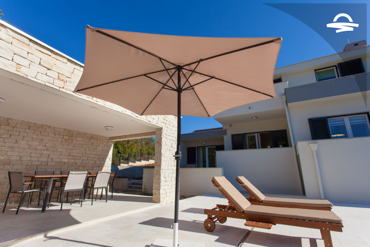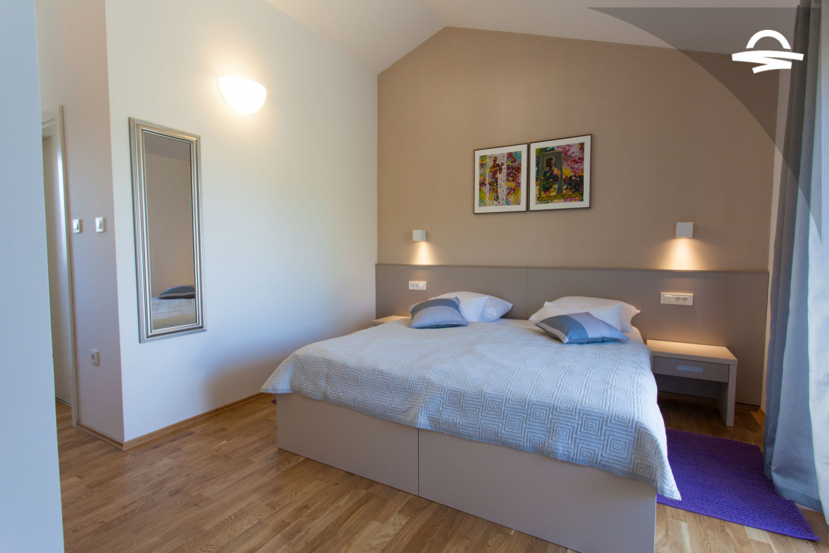Villa di lusso Adrimar è una villa di recente costruzione e dispone di 200 m2 mentre si trova nel cortile di 1.100 m2. Questa bella casa con una piscina di 24 m2 offre agli ospiti una vacanza rilassante con un pergolato con griglia e punto di incontro. L'ampio soggiorno con camino, sala da pranzo, cucina completamente attrezzata, e una camera da letto con un bagno completo si trova al piano terra. Al primo piano ci sono due camere da letto, due bagni con doccia, e una galleria con un divano letto per due persone. Così, la casa per le vacanze può ospitare 6-8 persone.