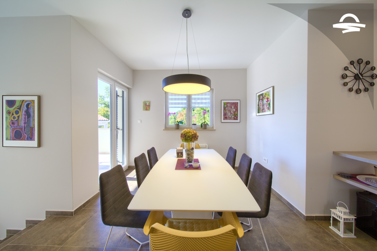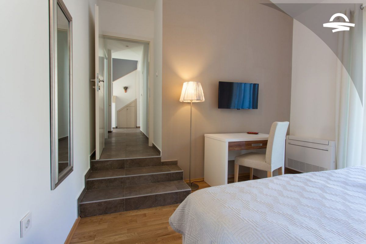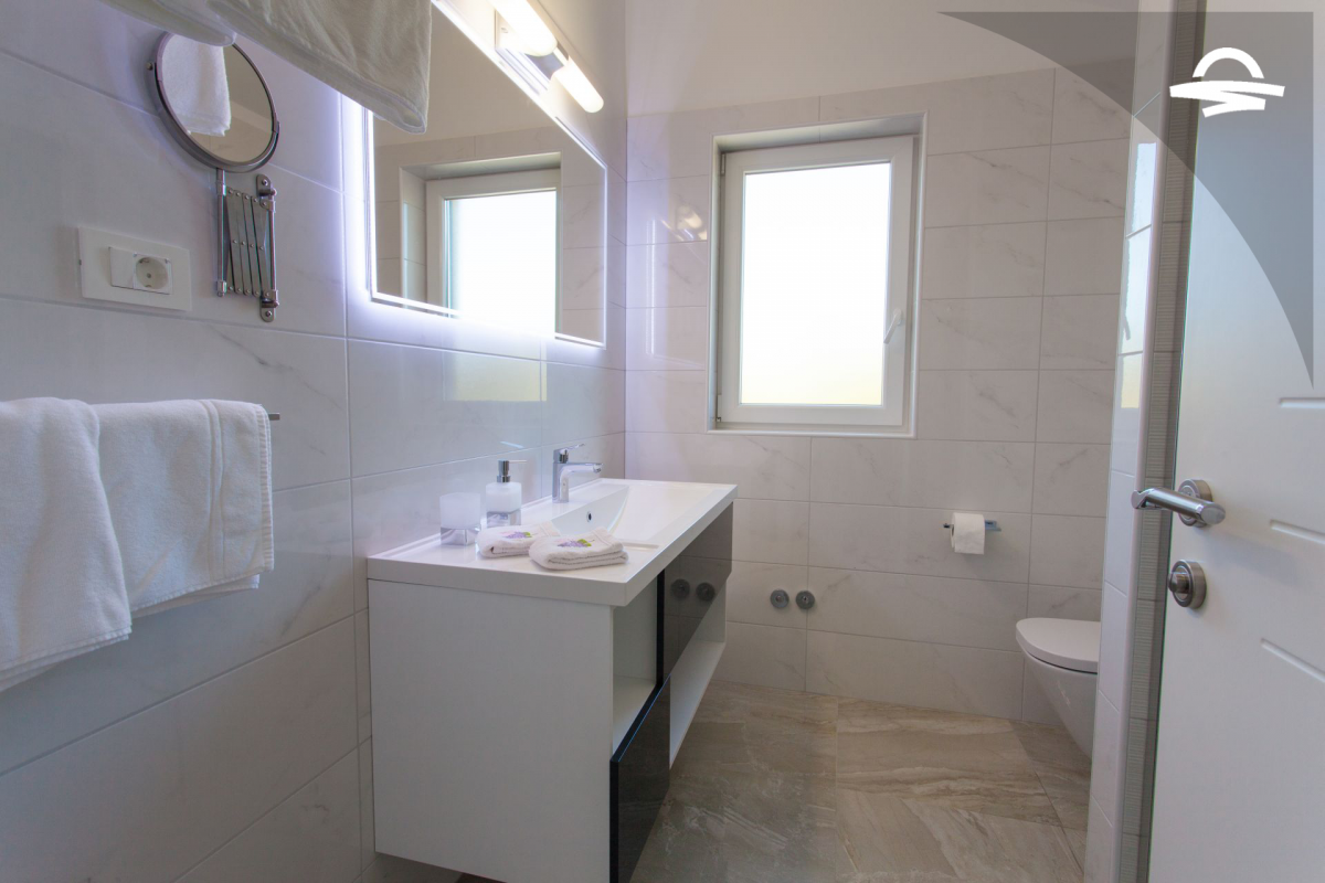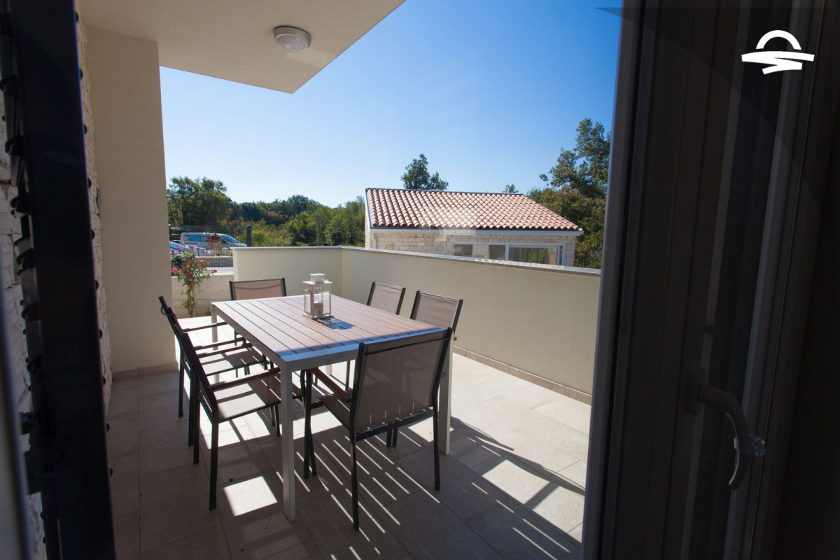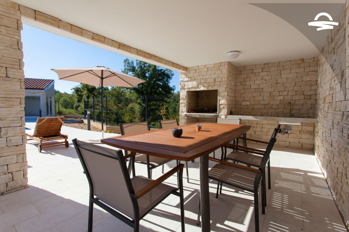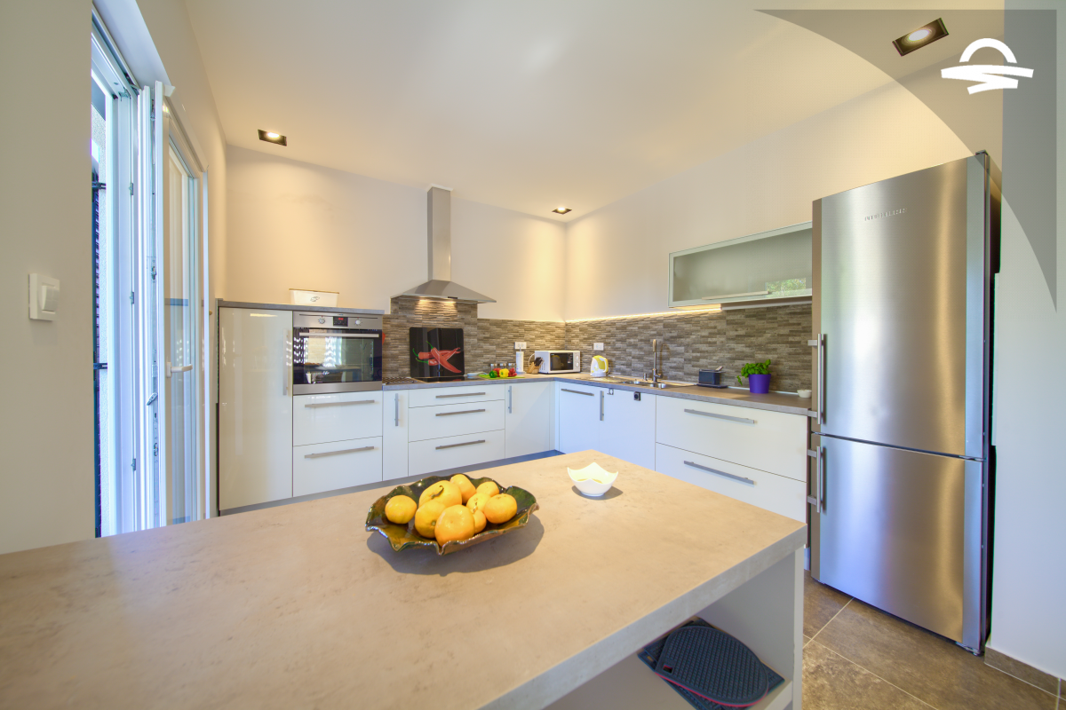 Villa di lusso Adrimar è una villa di recente costruzione e dispone di 200 m2 mentre si trova nel cortile di 1.100 m2. Questa bella casa con una piscina di 24 m2 offre agli ospiti una vacanza rilassante con un pergolato con griglia e punto di incontro. L'ampio soggiorno con camino, sala da pranzo, cucina completamente attrezzata, e una camera da letto con un bagno completo si trova al piano terra. Al primo piano ci sono due camere da letto, due bagni con doccia, e una galleria con un divano letto per due persone. Così, la casa per le vacanze può ospitare 6-8 persone.