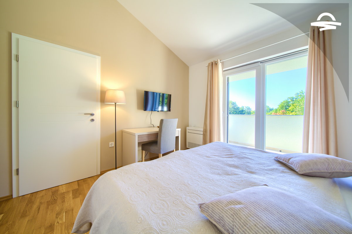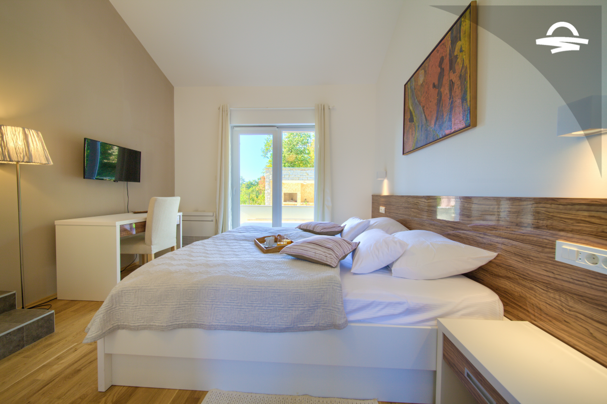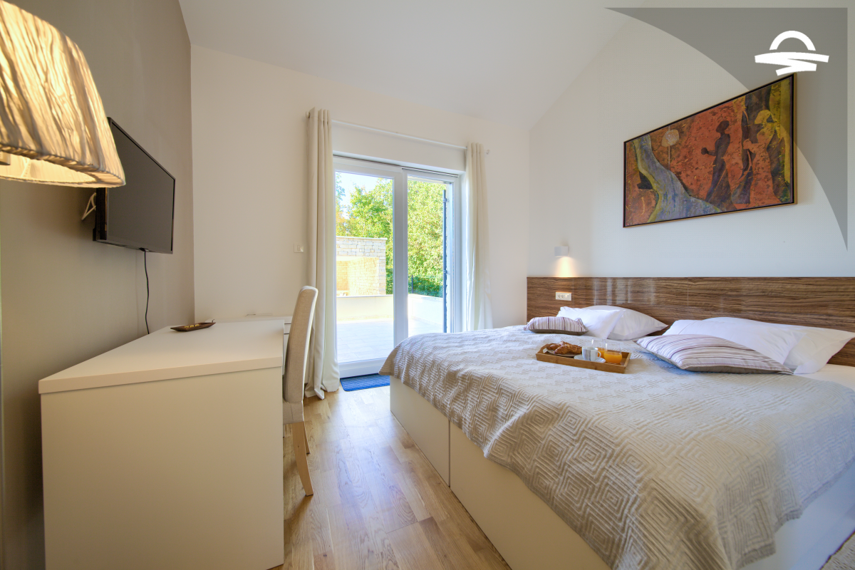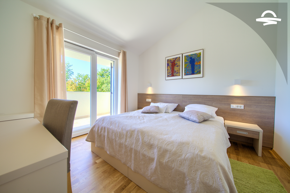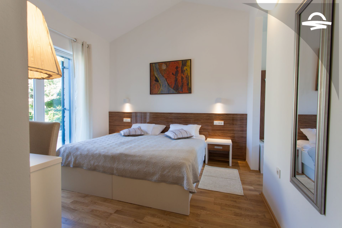 Villa di lusso Adrimar è una villa di recente costruzione e dispone di 200 m2 mentre si trova nel cortile di 1.100 m2. Questa bella casa con una piscina di 24 m2 offre agli ospiti una vacanza rilassante con un pergolato con griglia e punto di incontro. L'ampio soggiorno con camino, sala da pranzo, cucina completamente attrezzata, e una camera da letto con un bagno completo si trova al piano terra. Al primo piano ci sono due camere da letto, due bagni con doccia, e una galleria con un divano letto per due persone. Così, la casa per le vacanze può ospitare 6-8 persone.