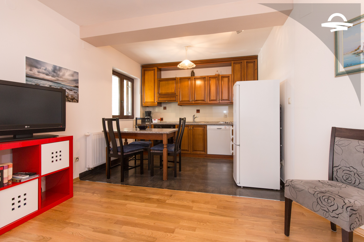 Arredato con gusto e ben attrezzato appartamento Ena 2 si trova al piano terra di una casa privata. L'appartamento ha 65 m2 e può ospitare 4 persone. Si compone di una cucina e soggiorno, due camere doppie, un bagno con doccia, ed un terrazzo.
