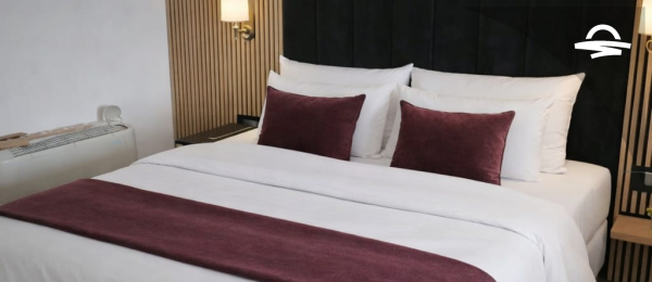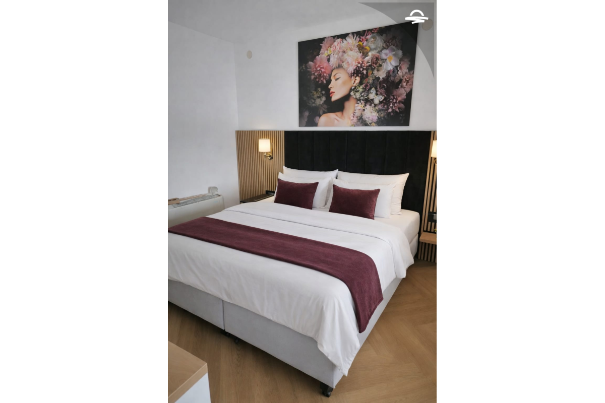 Camera doppia moderna e confortevole, dotata di aria condizionata, bagno privato, balcone, scrivania, TV e WiFi gratuito.